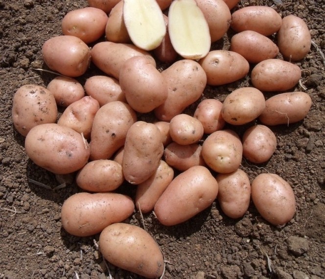 Variété précoce, produisant de gros tubercules à peau rouge et à chair jaune.