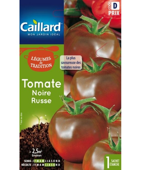 Les graines de Tomate "Noire Russe" de Graines Caillard transforment votre jardin en un havre de diversité et d'exotisme. Avec leur teinte unique et leur goût intense, ces tomates enrichissent chaque plat, qu'il soit servi frais ou cuisiné. Leur culture s'étend du début du printemps jusqu'à l'été, promettant une récolte abondante qui ravira les palais des gourmets de juin à octobre. Adaptées à tout type de sol sous un généreux soleil, elles se prêtent à une multitude de recettes, depuis la fraîche salade d'été jusqu'aux préparations mijotées pour les soirées plus fraîches. Suivez nos conseils pour une culture réussie et profitez pleinement des saveurs riches que ces semences ont à offrir.