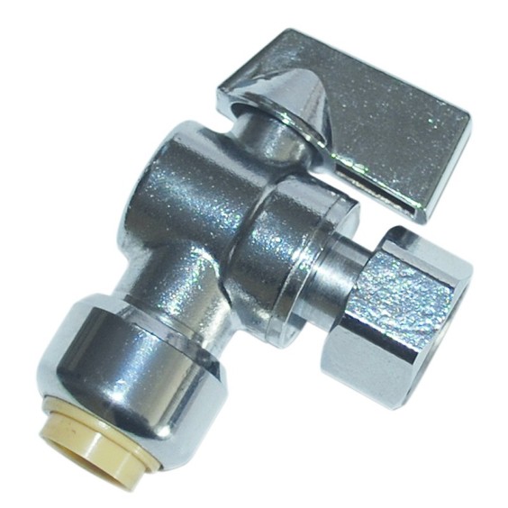 Robinet chromé WC équerre à écrou mobile femelle 12x17 Toutub pour raccord automatique Boutté de diamètre 16 mm ACS Montage sans outils. Tenue en pression : 16 bars. Température max. 80°C. Raccord démontable et réutilisable.